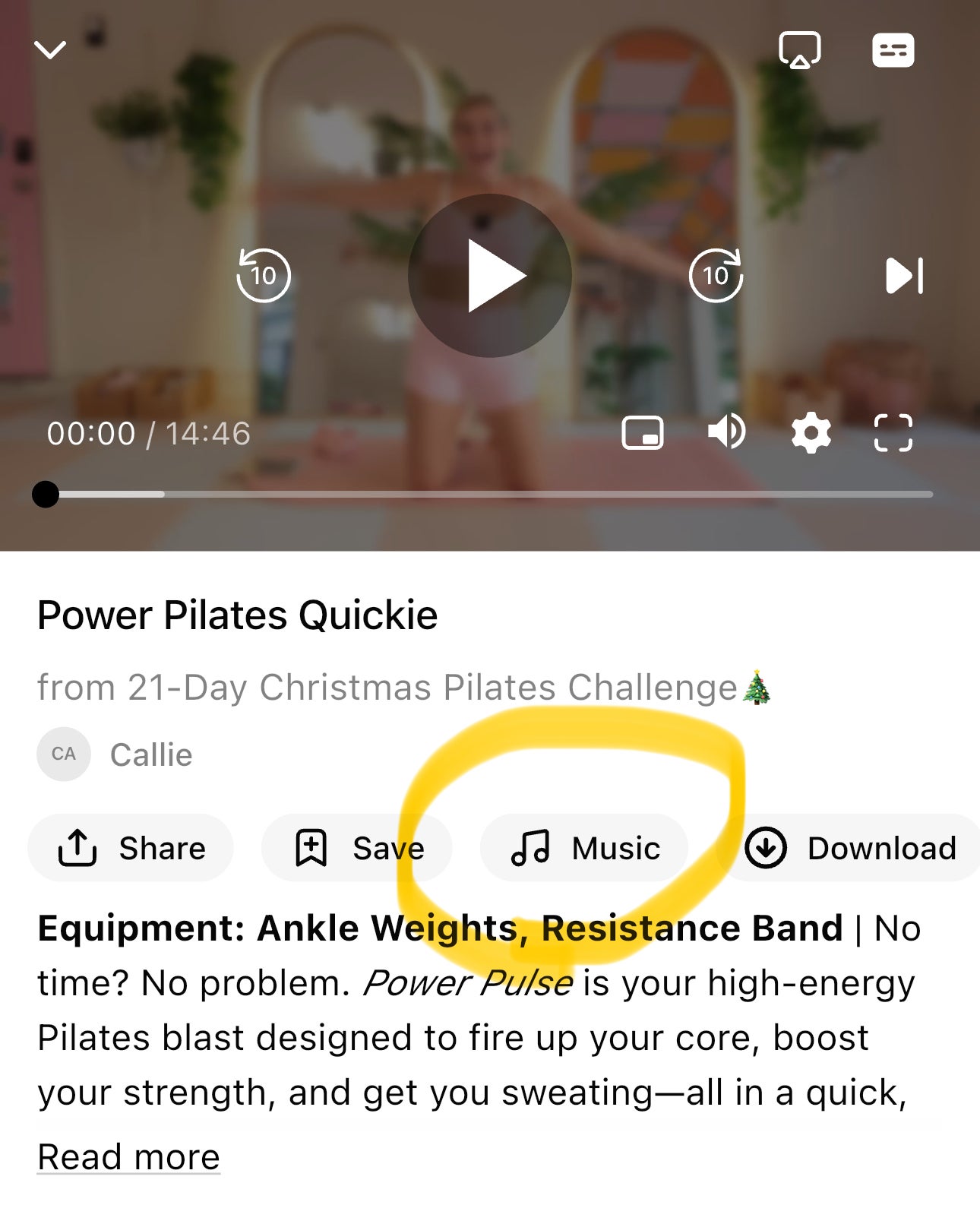 Hey Charmaine! You'll find the link to the music here π It'll prompt you to go over to spotify, where you can play the music and then pop back on to the app and press play for your workout and you'll be able to still hear the workout audio while playing the Christmas playlist. Let me know if that helps! Β